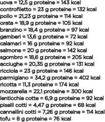 Esempio: 302 : 4 = 75 grammi di proteine